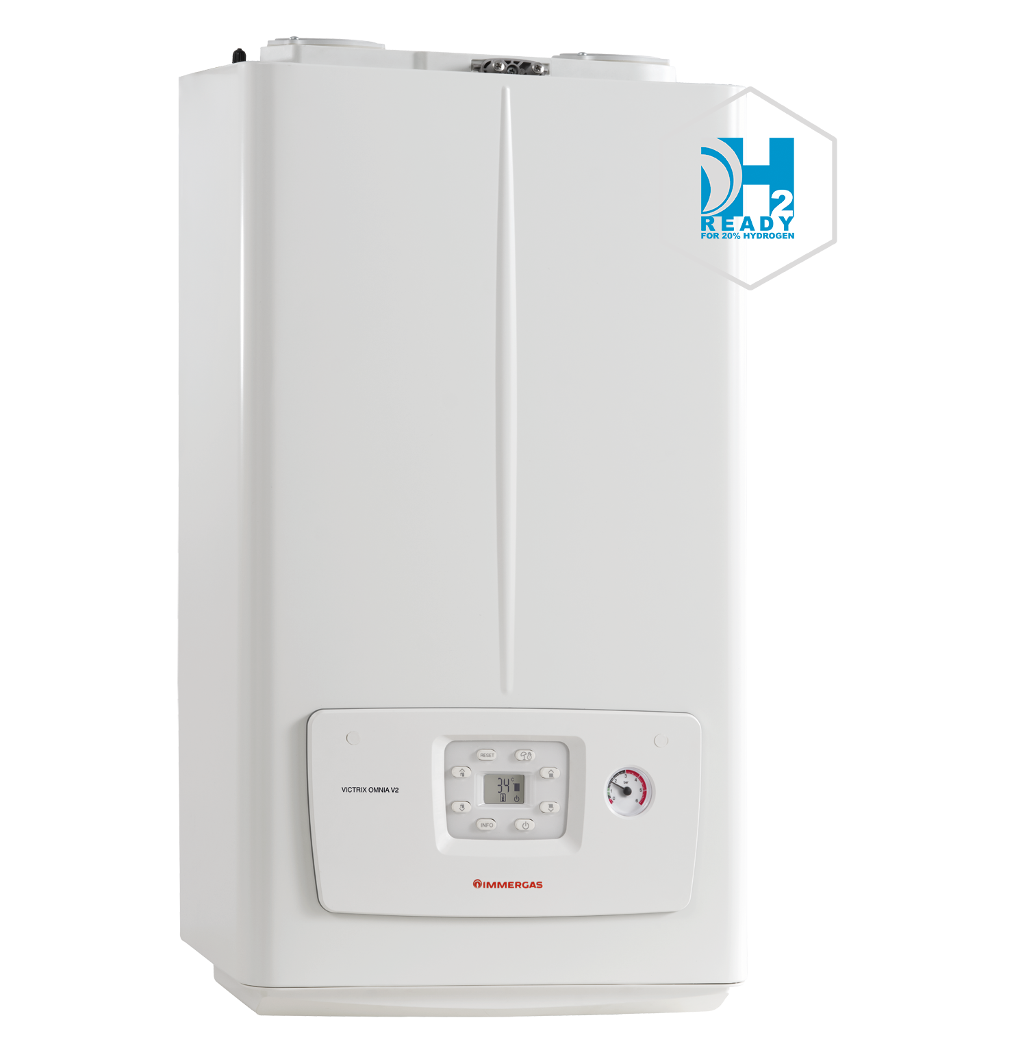 El modelo Victrix Omnia V2 incorpora una electrónica de gas autoadaptable para gas natural, GLP, y 20% de hidrógeno. Dicha adaptación se realiza sin necesidad de cambiar el inyector, ni de realizar ninguna manipulación mecánica; tan sólo modificando un parámetro de la placa electrónica. Un proceso limpio, rápido y sencillo.